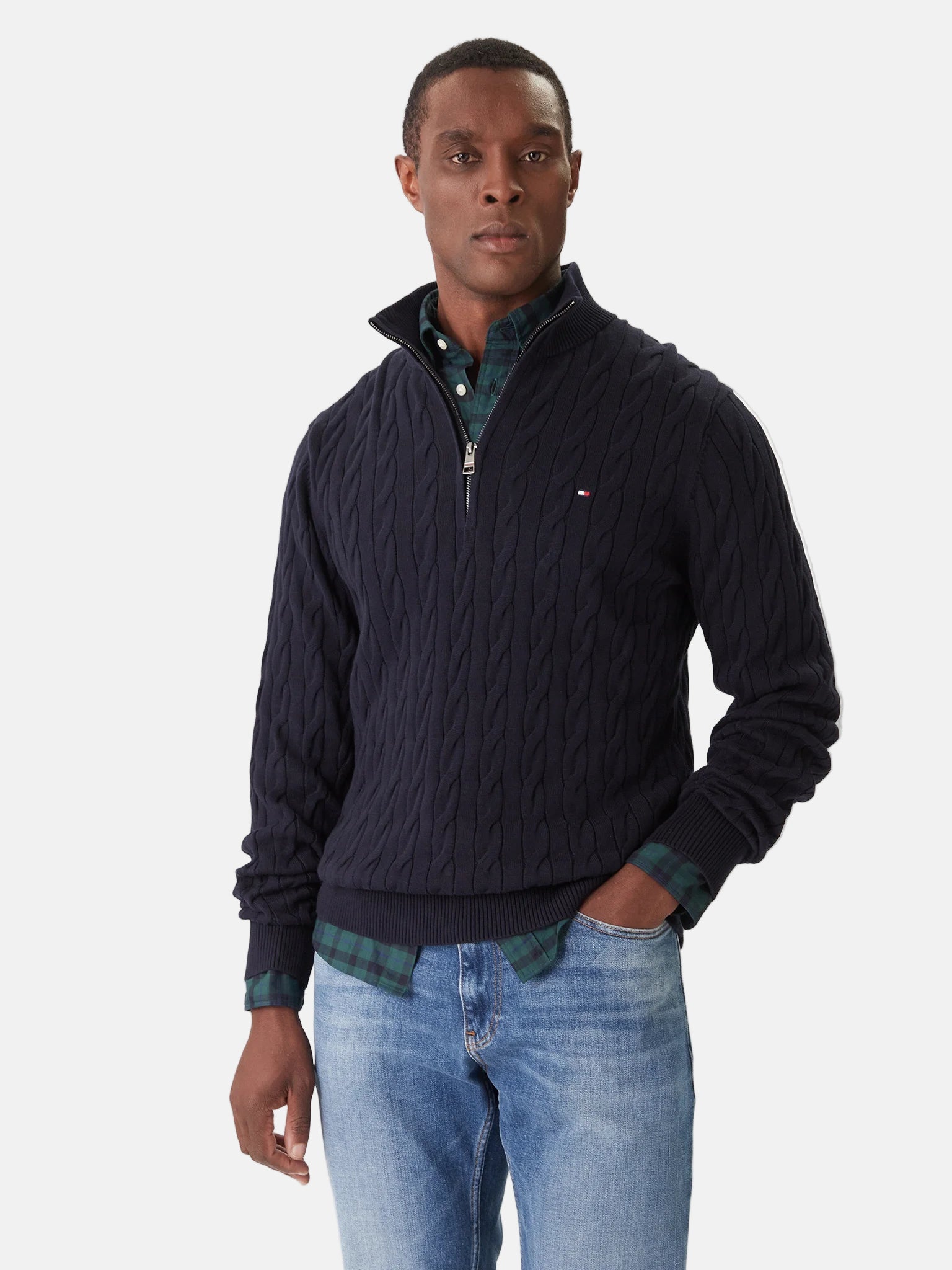 Tommy Hilfiger plavi muški džemper s pletenim uzorkom