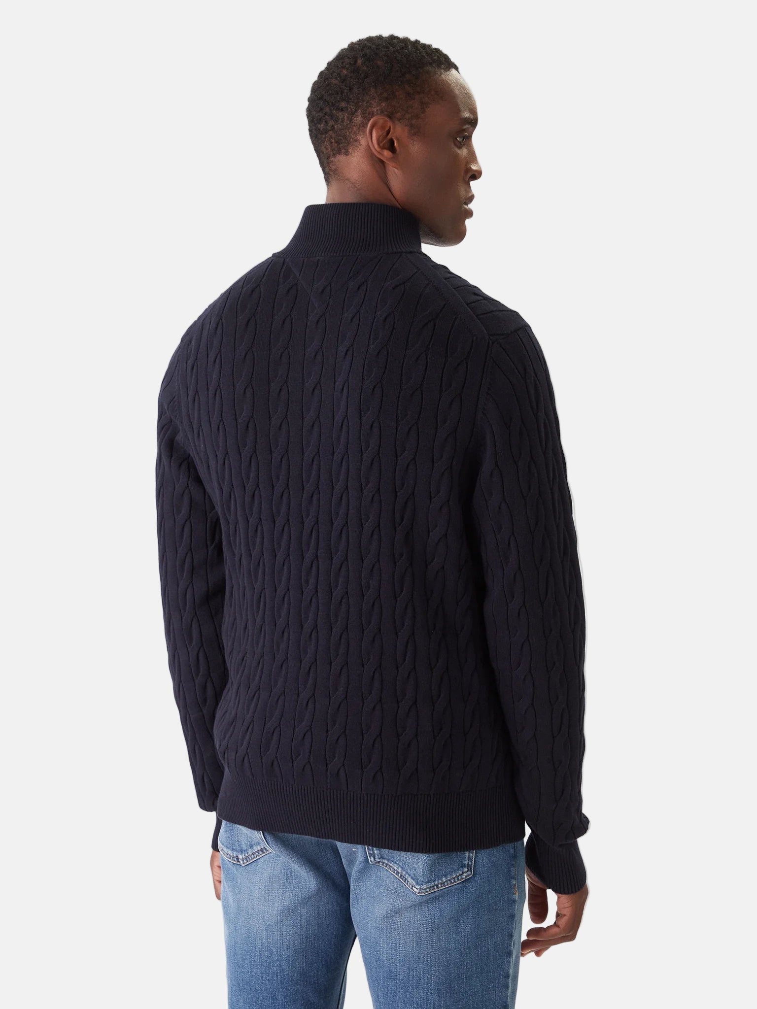 Elegantni džemper u tamnoplavoj boji spoj je udobnosti i stila, savršen za hladnije dane. Njegova pletena tekstura donosi dozu sofisticiranosti, dok rebrasti detalji osiguravaju da će se savršeno prilagoditi tijelu. Džemper se zatvara na zip, što dodatno olakšava svakodnevno oblačenje, a ujedno nudi mogućnost prilagođavanja topline. Idealno se uklapa uz klasične traperice ili hlače, što ga čini svestranim komadom za različite prilike, od ležernih izlazaka do poslovnih sastanaka. Ovaj džemper će obogatiti svaku garderobu i pružiti vam osjećaj ugode uz svaki outfit.