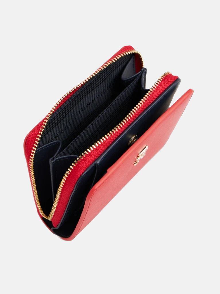 Ovaj elegantni novčanik u vibrantnoj crvenoj boji dodaje dašak sofisticiranosti svakodnevnim aksesoarima. Njegova glatka kožna površina nudi izdržljivost i lako održavanje, dok zlatni detalj na prednjem dijelu ističe brend s prepoznatljivim stilom. Novčanik je funkcionalan s više pregrada koje omogućavaju organizaciju kartica, gotovine i sitnica, čime se osigurava jednostavan pristup svemu što vam je potrebno. Ovaj novčanik je savršena kombinacija stila i praktičnosti, koji se može lako uskladiti s različitim odjevnim kombinacijama, bilo da se radi o poslovnom ili opuštenom izgledu.