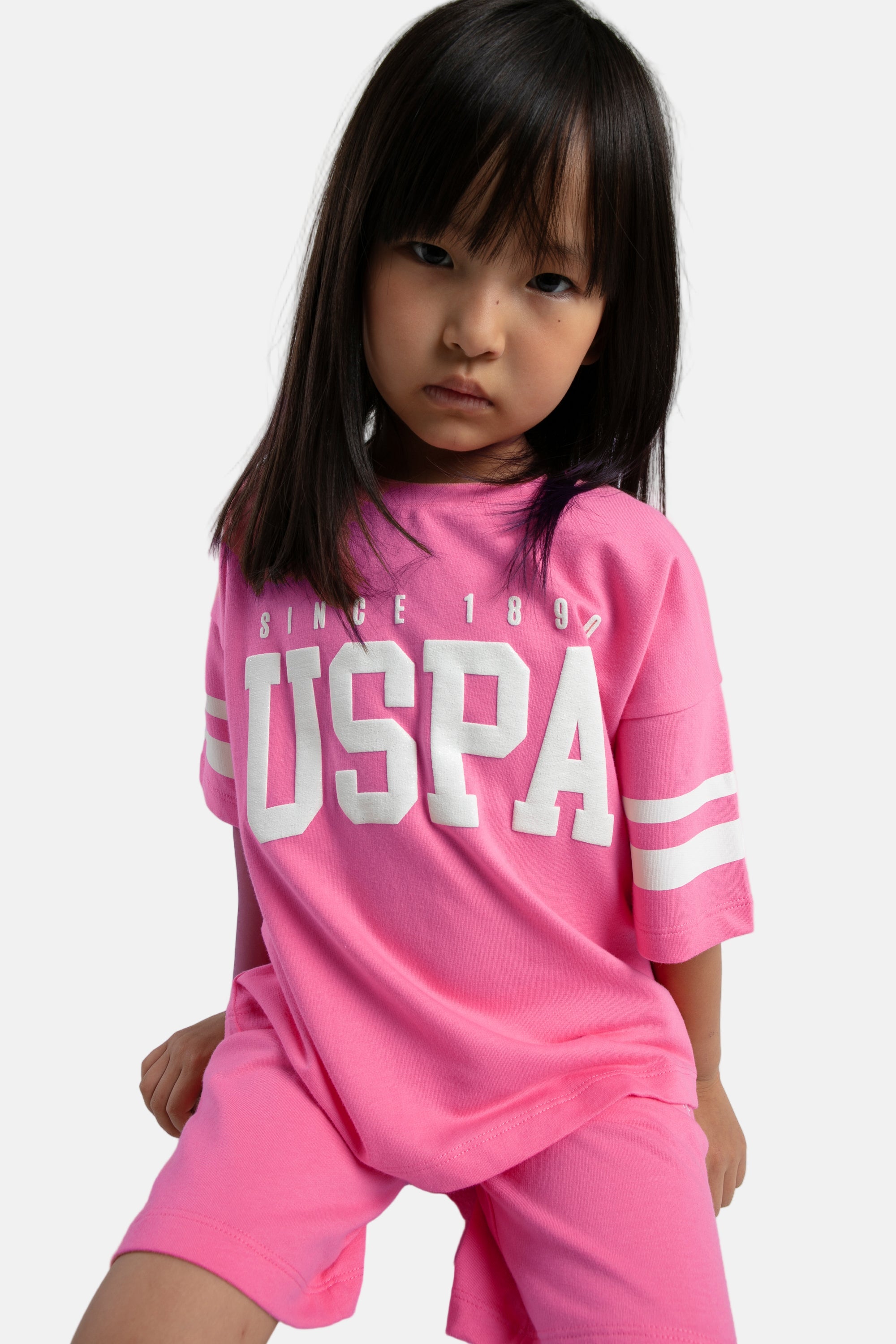 U.S. Polo Assn. pink komplet za djevojčice sa bijelim logom USPA
