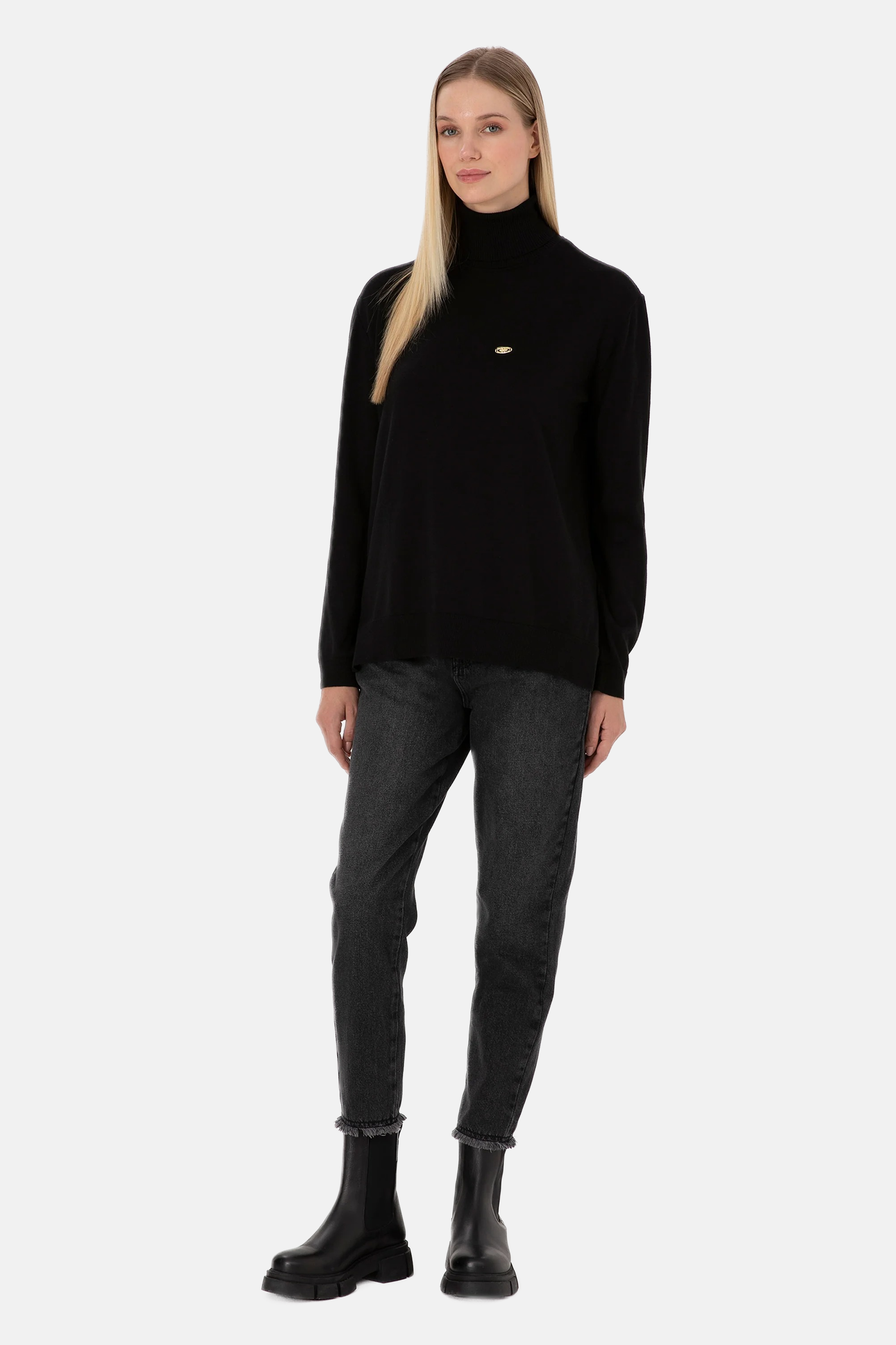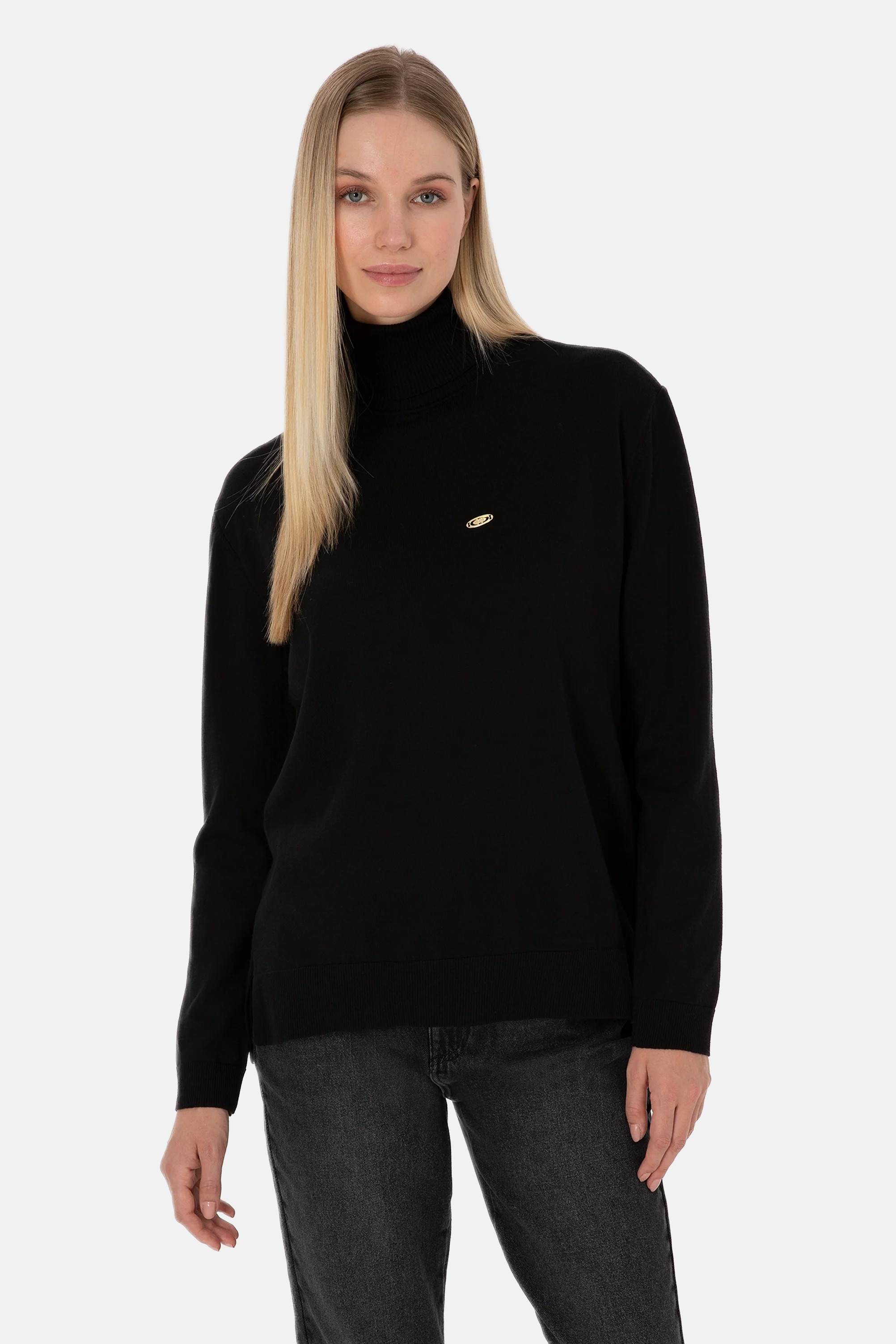 U.S. Polo Assn. crni ženski džemper s visokim ovratnikom